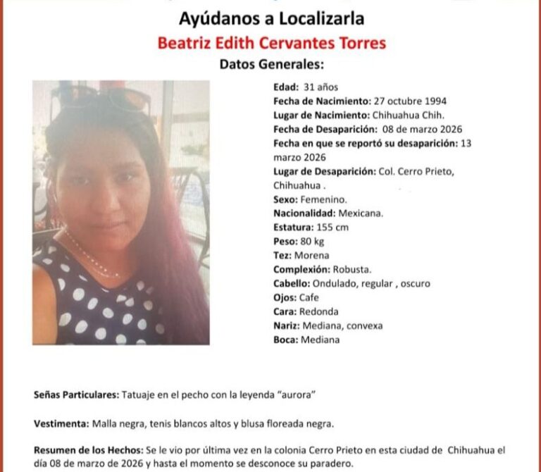 Reportan desaparición de mujer en la colonia Cerro Prieto