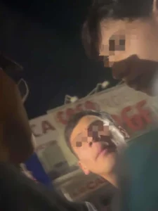 De acuerdo con testigos, cinco hombres comenzaron a provocar a dos jóvenes que se encontraban en el lugar, lo que derivó en una pelea. Durante el altercado, uno de los agresores llevó a uno de los afectados hacia una esquina; minutos después regresó visiblemente lesionado y perdiendo abundante sangre.