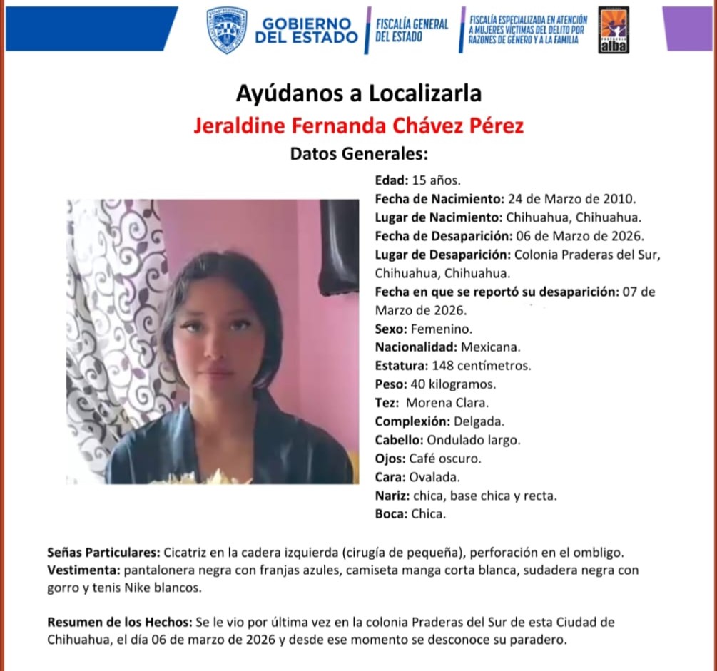 - Reportan desaparición de adolescente en Praderas del Sur 07/03/2026